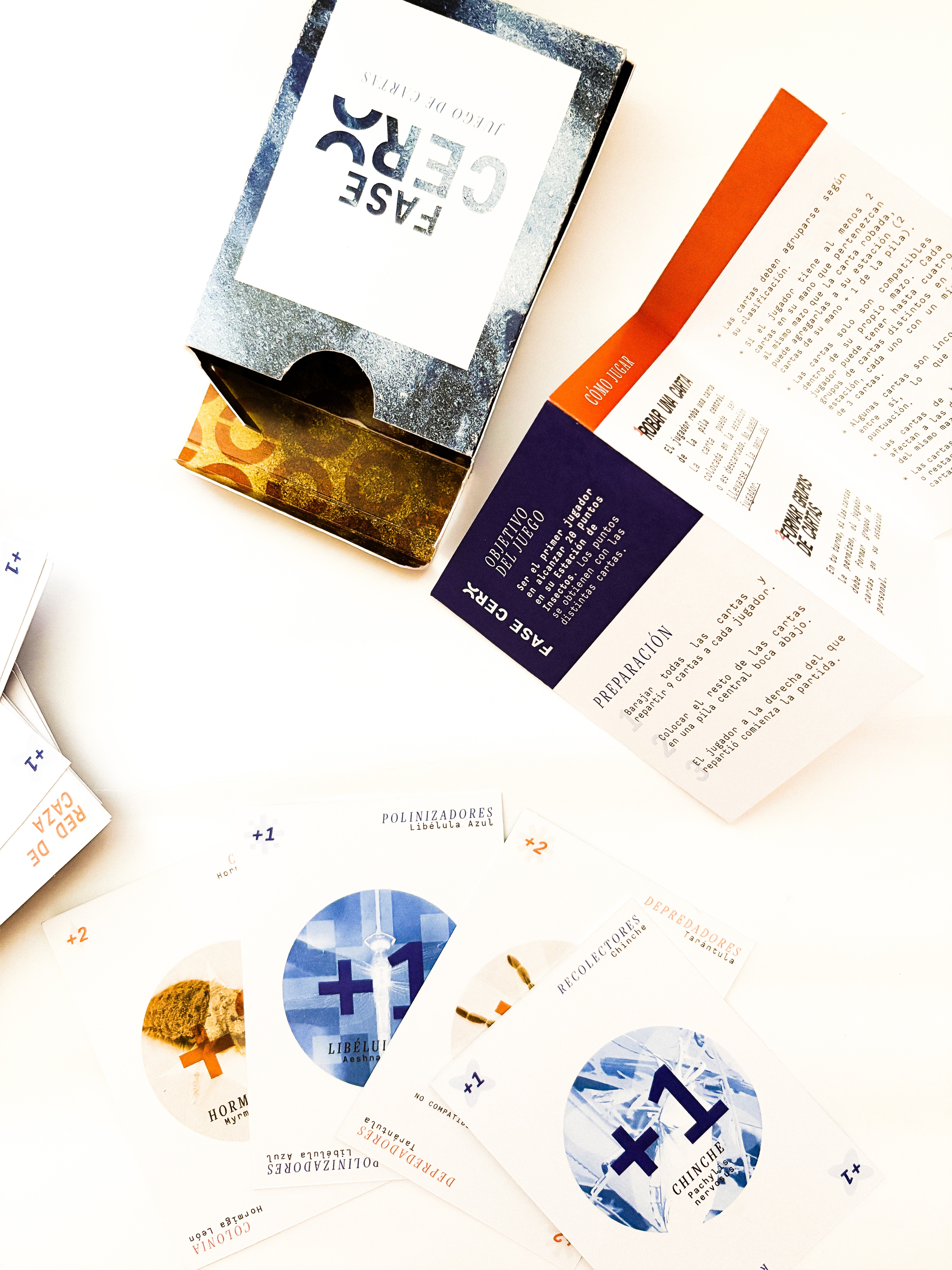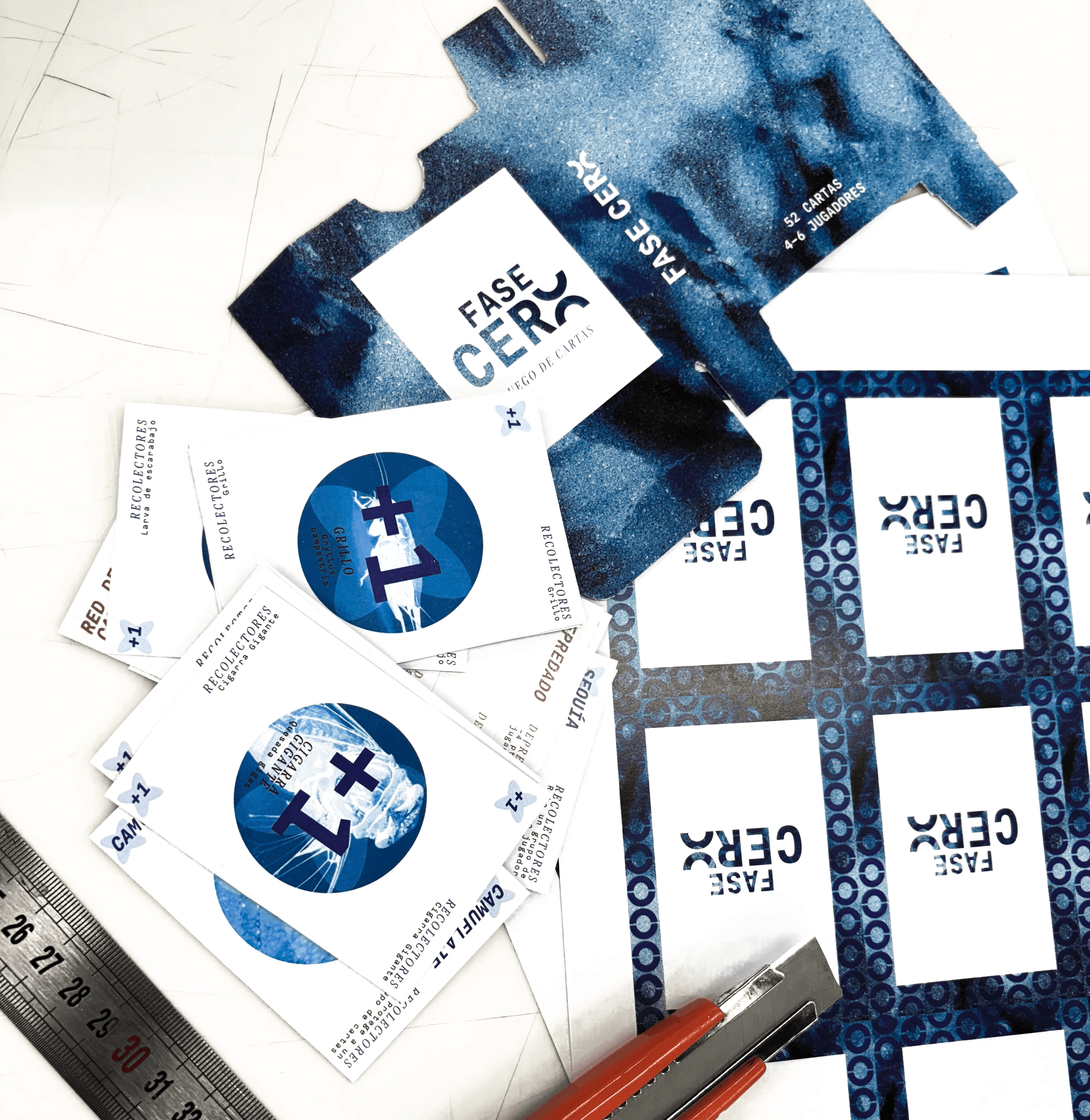 A nivel visual, el proyecto se desarrolló a partir de fotografía y edición digital, inspirado en los efectos del cianotipo y el uso de negativos, lo que dio lugar a una identidad gráfica coherente y distintiva. Se diseñaron las cartas, símbolos, sistema de puntuación, packaging y prototipo final, integrando funcionalidad, narrativa visual y coherencia conceptual.
