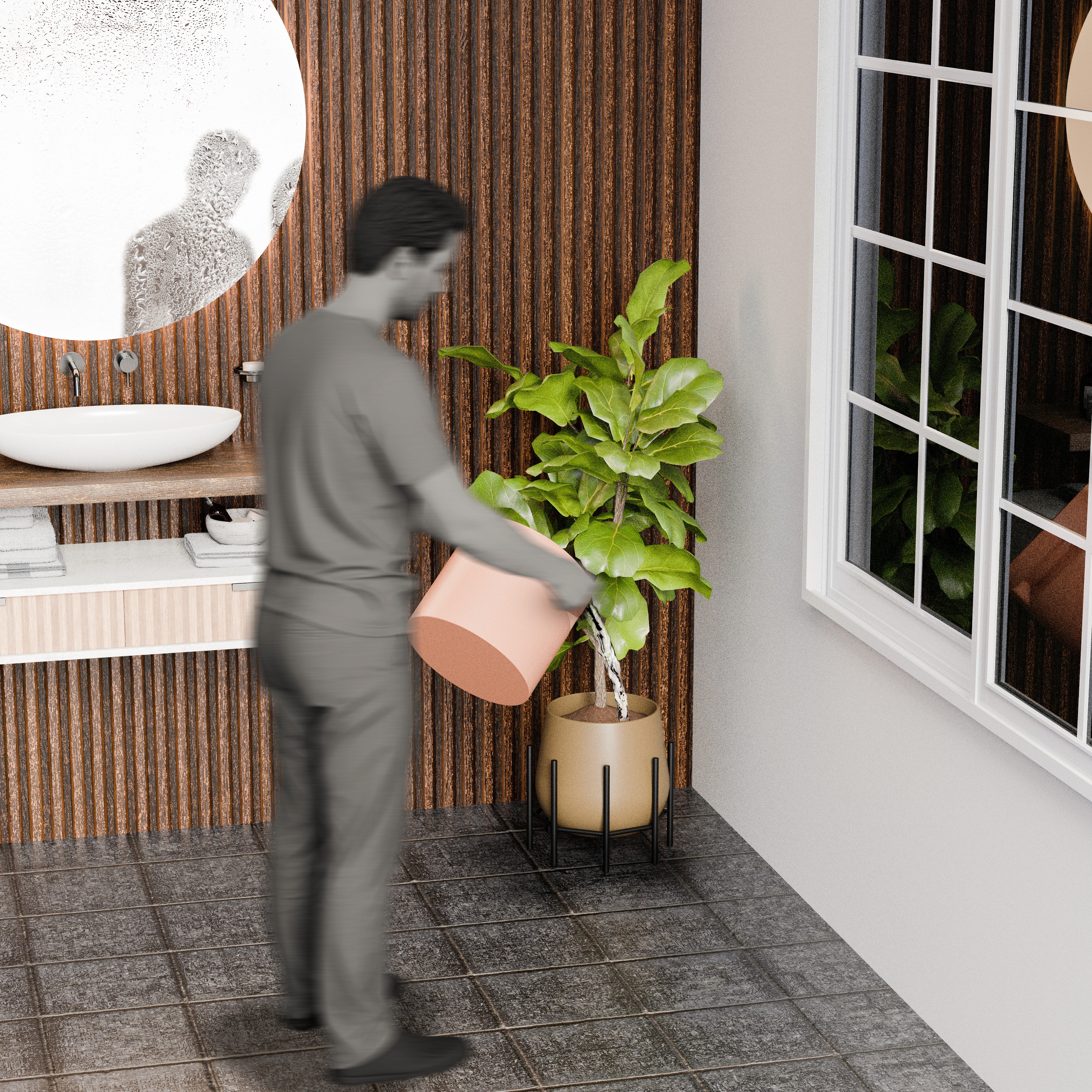 Ejemplo de reutilización del agua recolectada para actividades cotidianas.